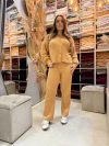 O casaquinho, confeccionado em tecido mousse de alta qualidade, proporciona um toque macio e aconchegante. Seu design com botões permite diversas opções de uso, enquanto a calça pantalona ajustada realça a silhueta de forma elegante, garantindo um visual impecável para qualquer ocasião.